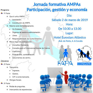 El sábado 2 de marzo tuvo lugar la Jornada formativa AMPAs en el Hotel Eurostars Atlántico, como representantes de nuestra Ampa estaban Nieves y Carolina.